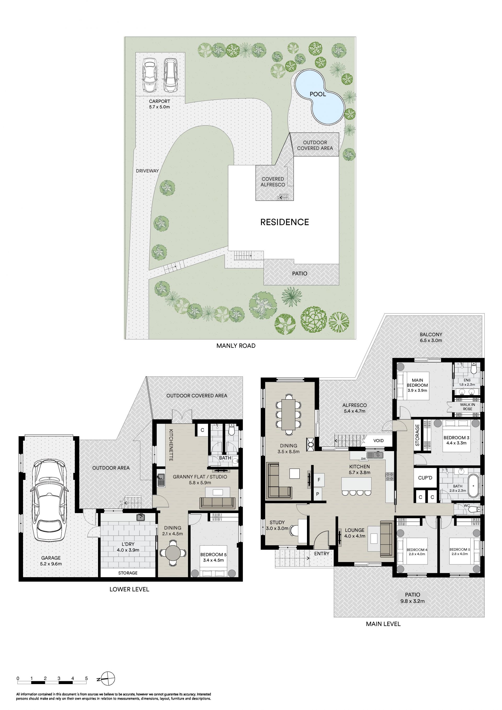 • 4 generous bedrooms upstairs, with granny flat / 5th bedroom downstairs