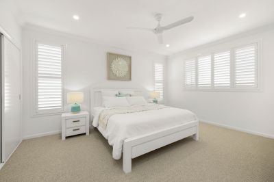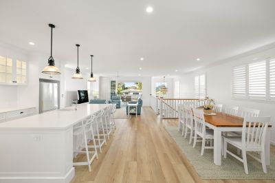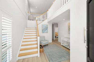 Showcasing an enviable array of high end finishes with no expense spared throughout the property including but not limited to the high ceilings, Caesarstone bench tops, Victorian Ash staircase, waterproof hybrid flooring, generously sized rooms, plantation shutters and sheers. This home captures the cooling bay breezes from all living and bedroom areas. From the vaulted entertainment deck to the bespoke kitchen including a Falcon stove every detail has been curated for an easy lifestyle and comfort with enduring design.