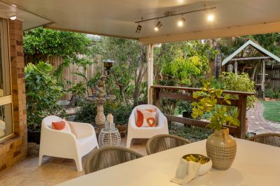 - Covered alfresco entertaining overlooking manicured, established gardens