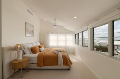 A masterful blend of contemporary design and coastal elegance, this brand-new Manly home by award-winning builder Mitcon reimagines a pre-1911 cottage into a modern bayside retreat. Light-filled interiors flow through polished white concrete floors and open-plan living spaces to an alfresco terrace with a heated pool and spa. The Roman travertine kitchen features integrated European appliances, a walk-through pantry, and direct access to the laundry and double garage. Upstairs, the master suite captures sweeping bay views and includes a hotel-style ensuite and walk-in robe, joined by three additional bedrooms, a rumpus, and a dedicated office.
